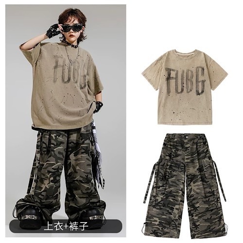 【207】キッズダンス衣装 セットアップ 2点セット 女の子用 男の子用 男女兼用 派手 ストリート系 ヒップホップ ダンスウェア 半袖 練習着