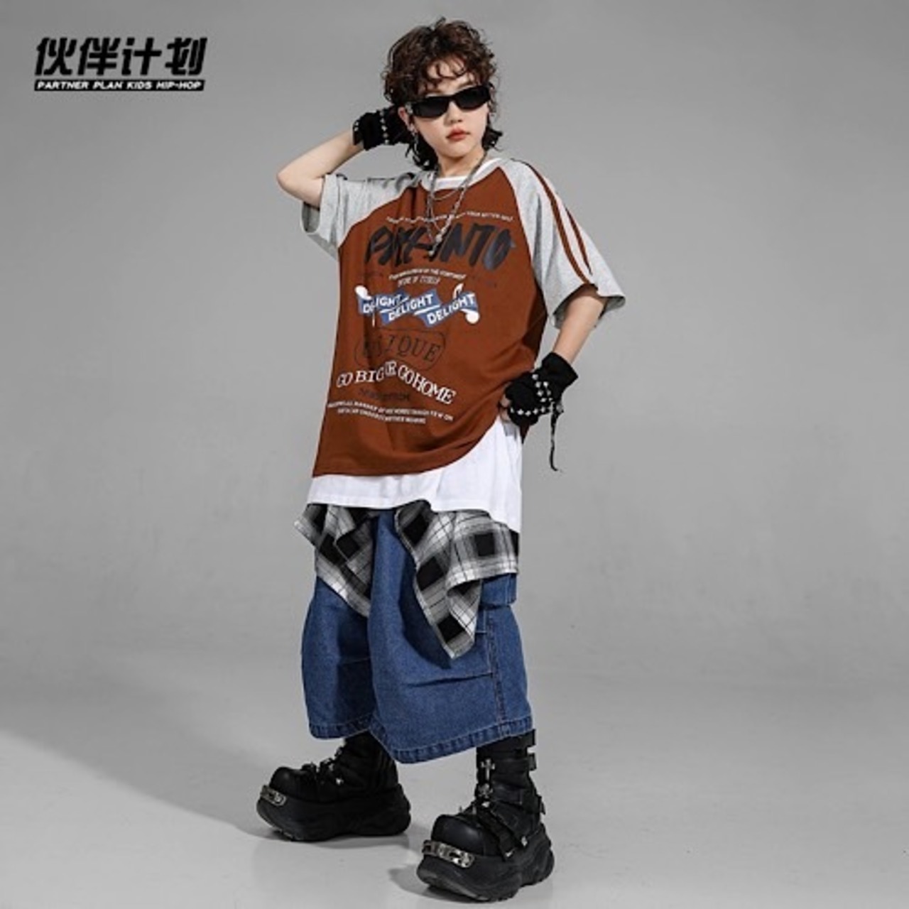 【214】キッズダンス衣装 セットアップ 2点セット 女の子用 男の子用 男女兼用 派手 ストリート系 ヒップホップ ダンスウェア 半袖 練習着