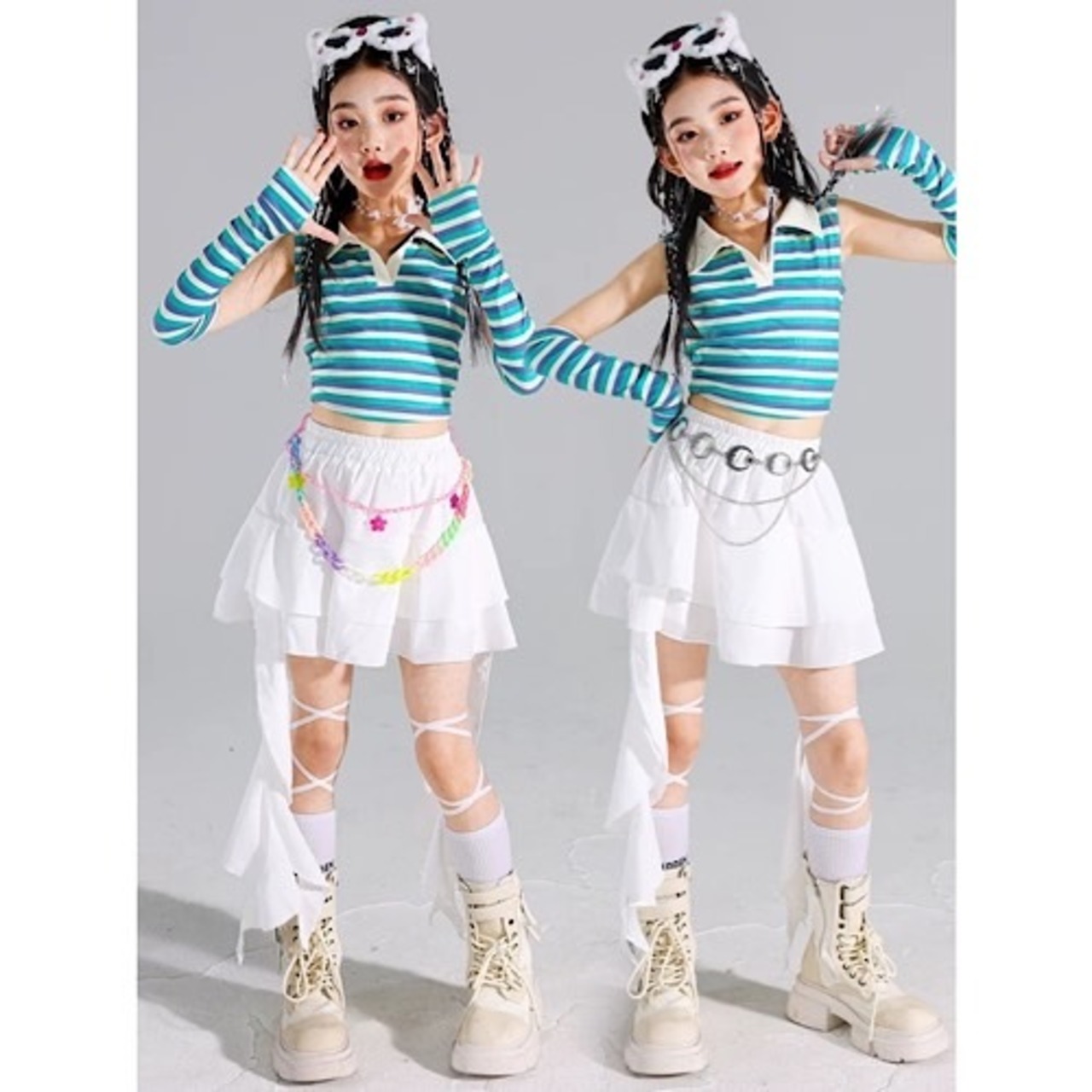 【215】キッズダンス衣装 セットアップ 女の子用 ノースリーブ 3点セット ストリート系 ヒップホップ ダンスウェア 練習着
