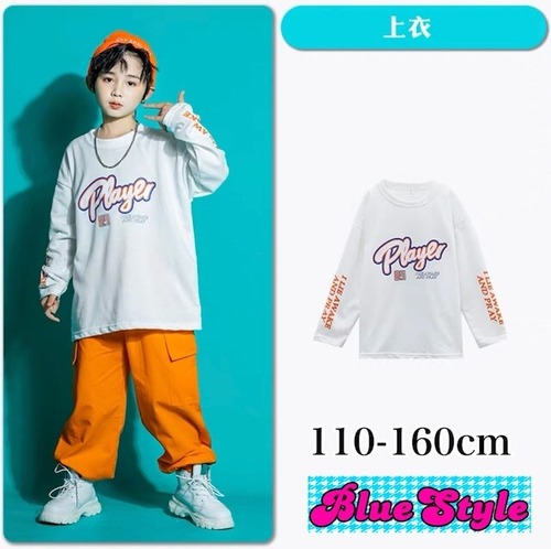 キッズダンス衣装 トップス 男女兼用 カジュアル オレンジ ホワイト ストリート系 ヒップホップ ダンスウェア