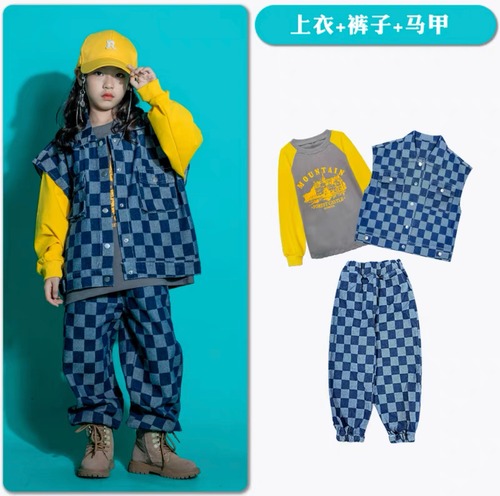 キッズダンス衣装 3点セット 男女兼用 カジュアル ブルー ストリート系 ヒップホップ 3点セット ダンスウェア 練習着