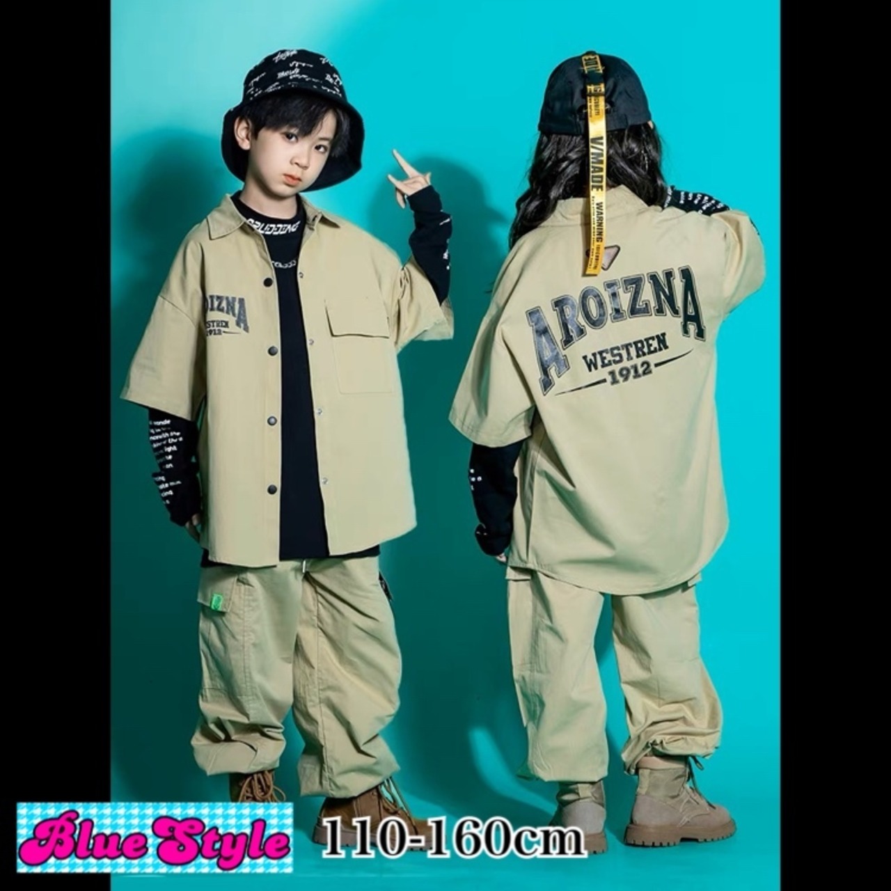 キッズダンス衣装 3点セット 男女兼用 カジュアル ベージュ ストリート系 ヒップホップ カーキ ダンスウェア 練習着
