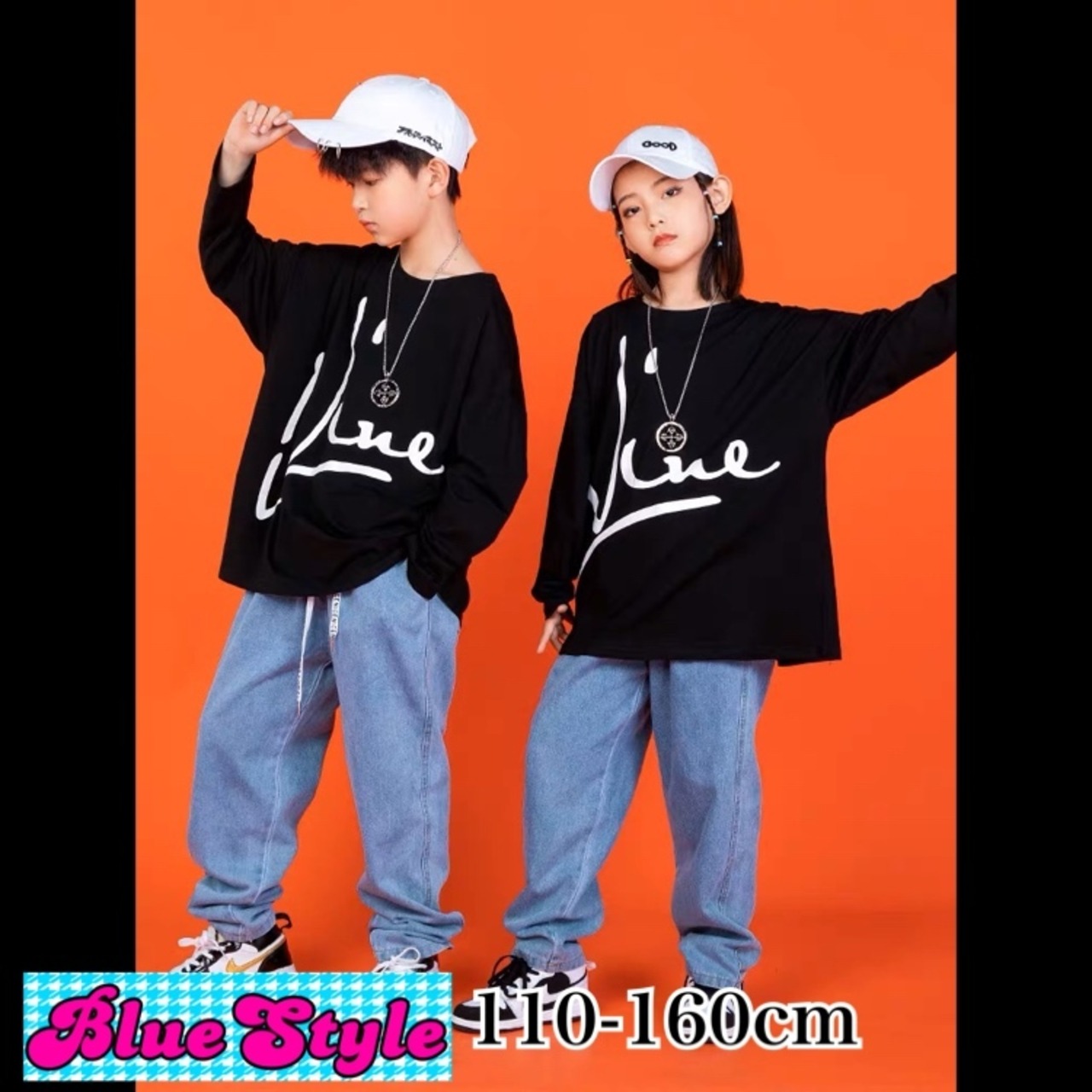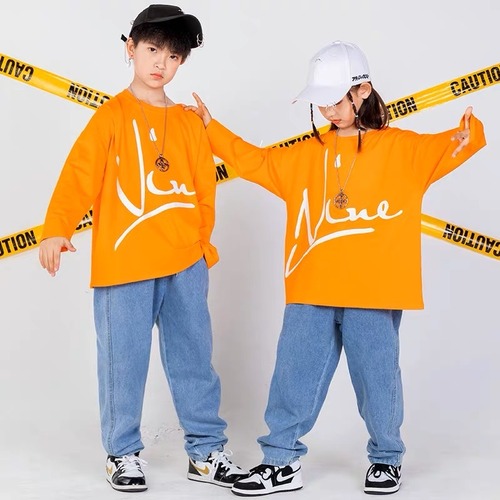 キッズダンス衣装 セットアップ 男女兼用 カジュアル シンプル ストリート系 オレンジ ヒップホップ ダンスウェア 練習着 ブラック