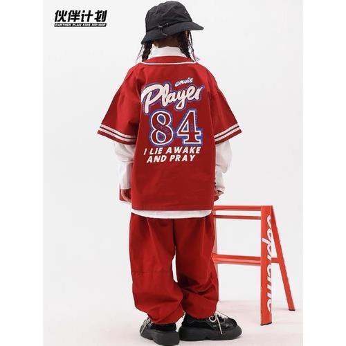キッズダンス衣装 セットアップ 男女兼用 カジュアル シンプル ストリート系 ワインレッド ヒップホップ ダンスウェア 練習着