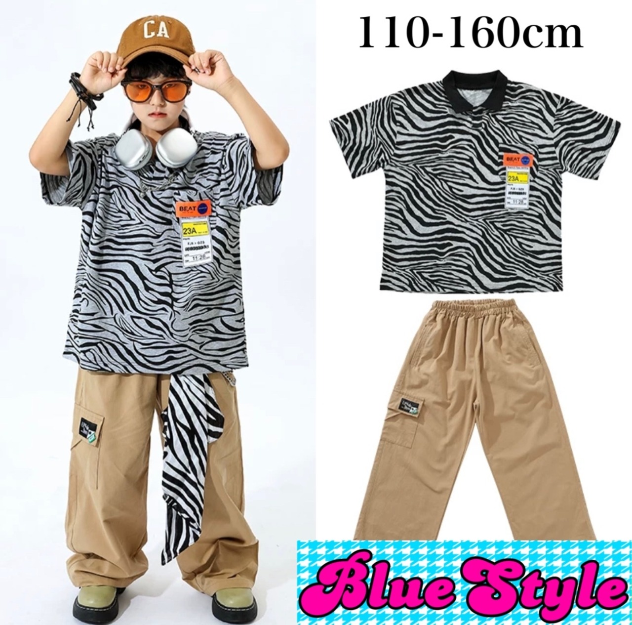 キッズダンス衣装 セットアップ 男女兼用 カジュアル シンプル ストリート系 ゼブラ柄 ヒップホップ ダンスウェア 練習着