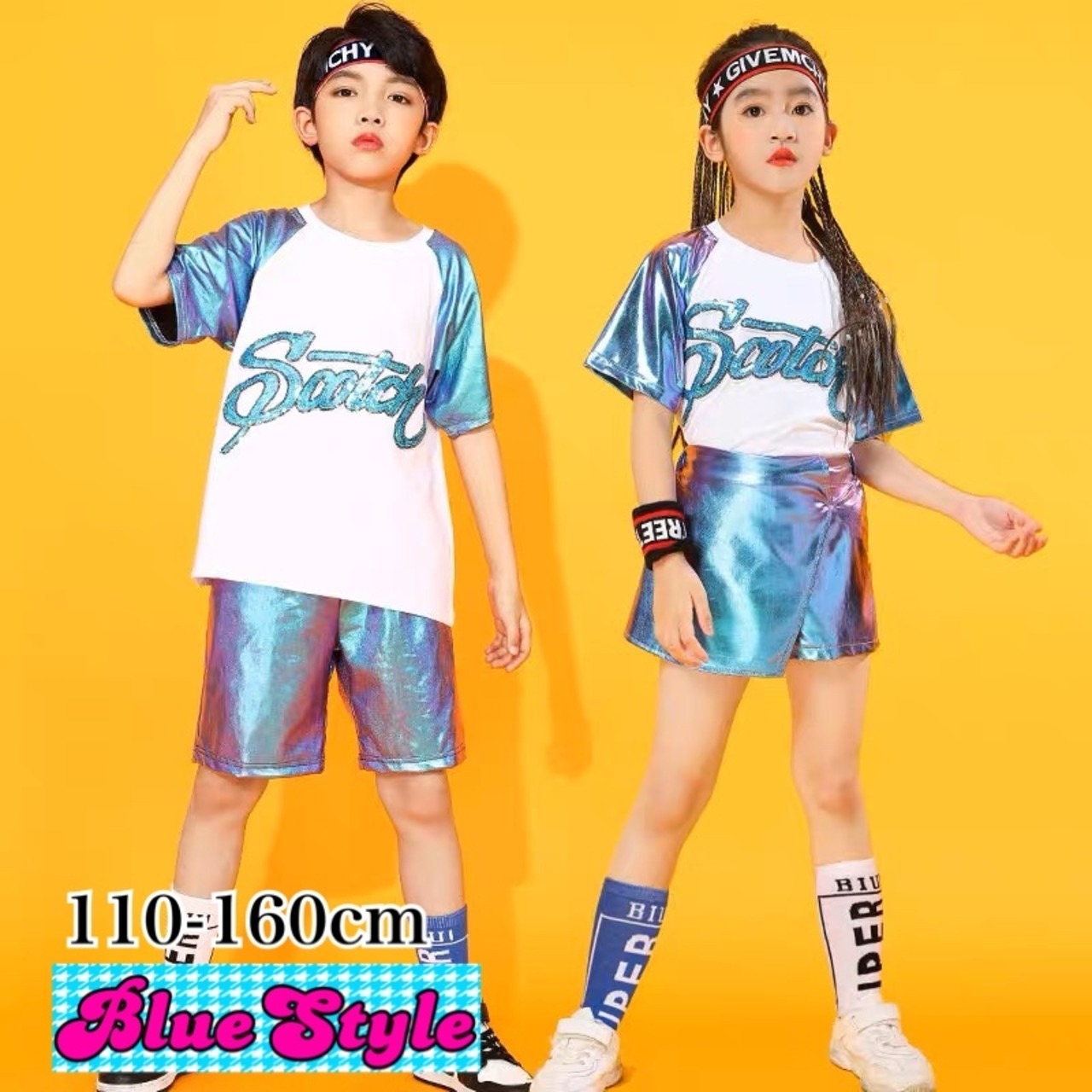 キッズダンス衣装 セットアップ 男女兼用 派手 ストリート系 ホワイト ヒップホップ ダンスウェア 練習着