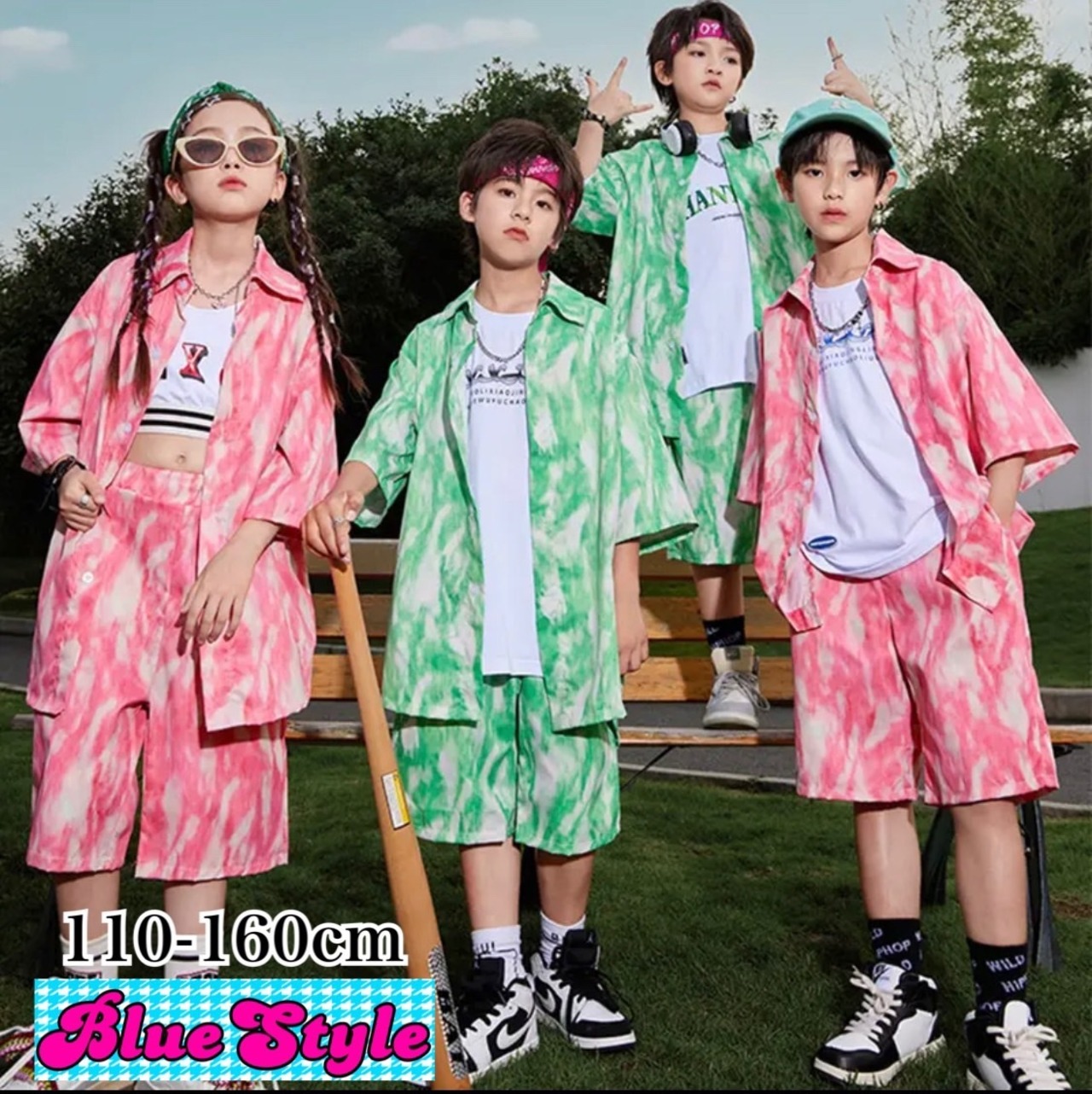 キッズダンス衣装 セットアップ 男の子用 女の子用 ユニセックス 男女兼用 シンプル ストリート系 ピンク グリーン ヒップホップ ダンスウェア 練習着