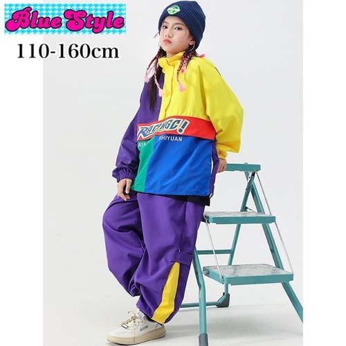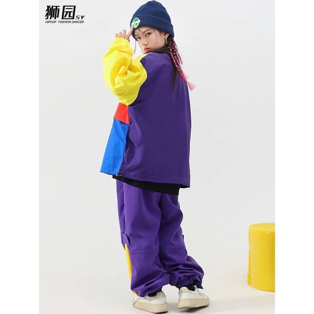 キッズダンス衣装 セットアップ 男の子用 女の子用 ユニセックス 男女兼用 シンプル ストリート系 パープル ヒップホップ ダンスウェア 練習着