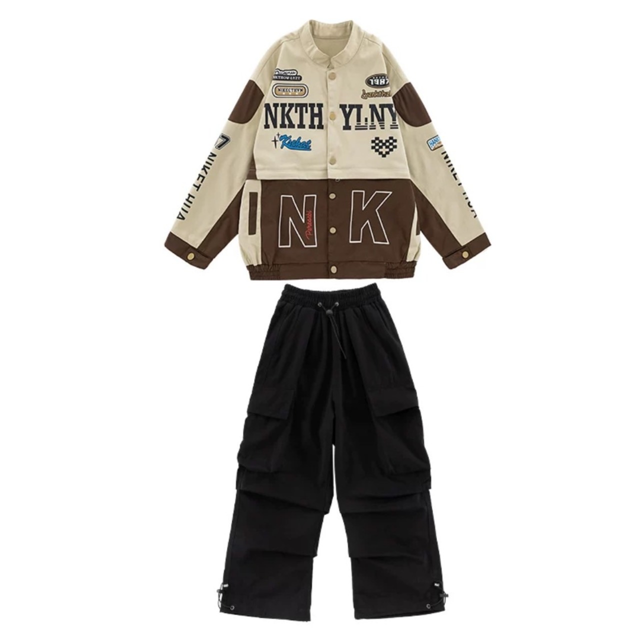 キッズダンス衣装 2点セット 男の子用 女の子用 ユニセックス 男女兼用 派手 ストリート系 カーゴパンツ ヒップホップ ダンスウェア 練習着