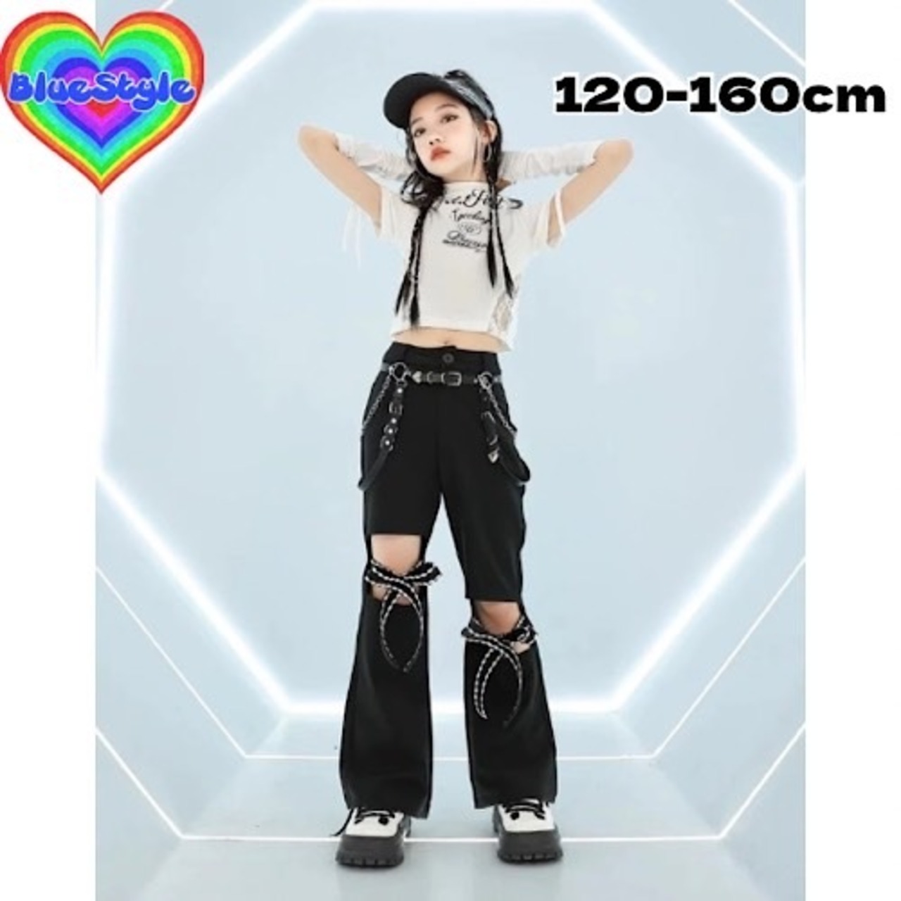 キッズダンス衣装 セットアップ 女の子用 派手 ストリート系 ヒップホップ ダンスウェア 練習着 3点セット